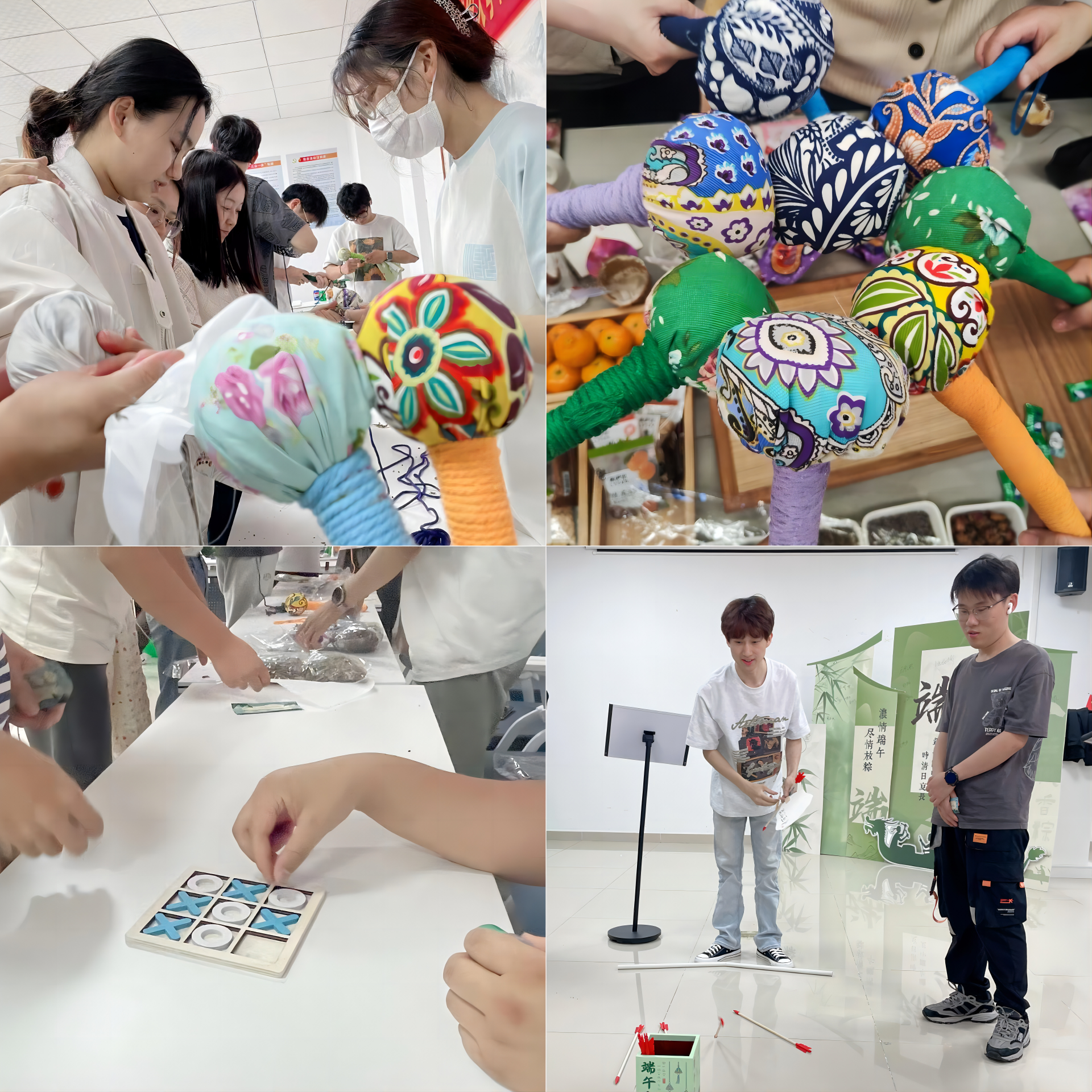 三子棋智慧比拼,你来我往,各人一展棋艺,体验智慧的火花。“百发百粽”环节各人争相实验,箭矢射入壶中的瞬间,现场掌声不绝。