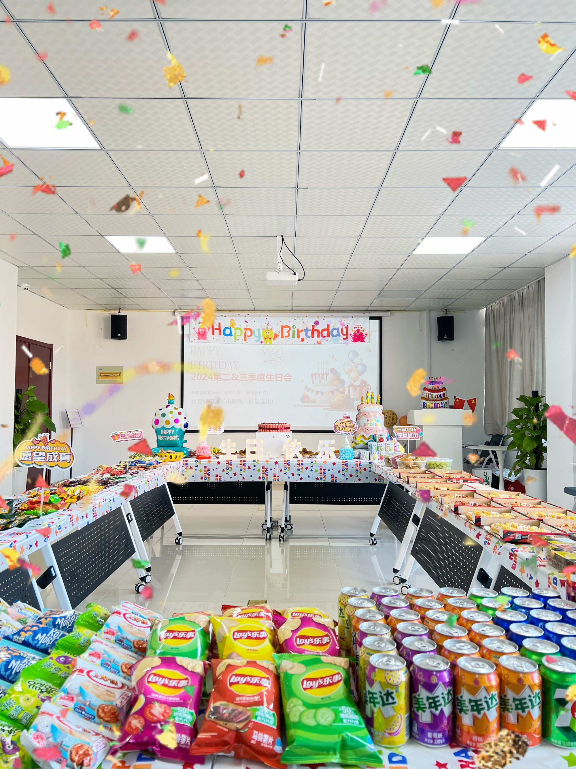 五彩的气球和闪烁的彩带在灯光下交相辉映,美食礼品琳琅满目。陪同着生日歌响起,来自差别部分的4-9月寿星齐聚会场,相约现在,配合分享生长的喜悦与未来的期待。