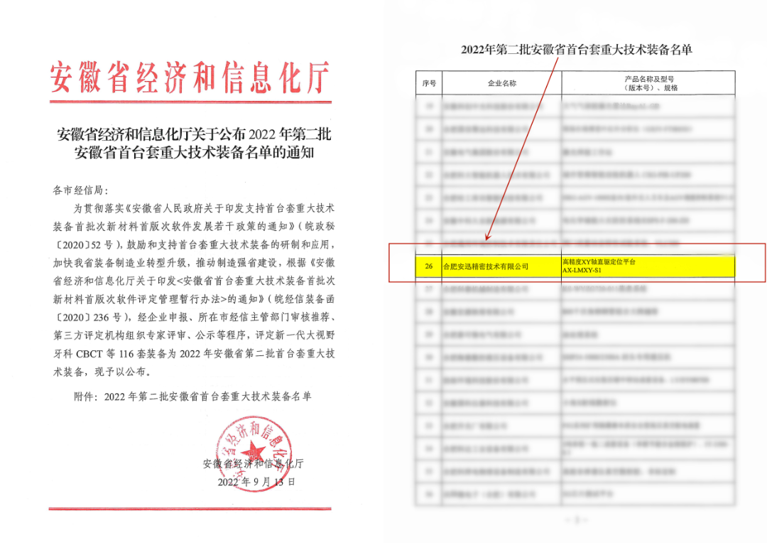 诚博国际精密自主研发的“高精度XY轴直驱定位平台”凭借其先进技术通过认定,获得“安徽省首台套重大技术装备”荣誉称呼。